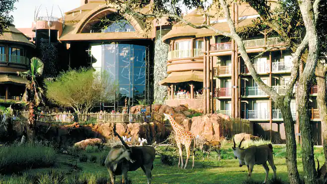 Disney’s Animal Kingdom Villas is a lodge-style resort featuring spacious accommodations in a setting that make you feel like you're right in the heart of Africa. Over 30 species of African wildlife roam free amidst four lush, tropical savannas, which you may view at observation stations throughout the resort and from select guest room balconies. The resort is set in the middle of an expansive wildlife preserve. It features authentic African-inspired architecture and landscape design that allows for expansive views of the savanna and its many animal inhabitants.